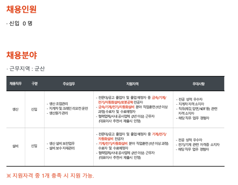 \n\n세아베스틸은 대한민국을 대표하는 특수강 전문 기업입니다. 자동차, 건설, 산업기계 등 다양한 분야에 사용되는 고품질의 특수강을 생산하며, 끊임없는 기술 혁신과 품질 개선을 통해 글로벌 시장에서도 인정받고 있습니다. 특히 군산 공장은 세아베스틸의 핵심 생산 기지로서, 다양한 기능직 인력을 필요로 합니다. 세아베스틸은 단순한 철강 회사가 아닌, 미래 소재 산업을 선도하는 기업으로 도약하기 위해 끊임없이 노력하고 있습니다. 여러분의 열정과 역량을 펼칠 수 있는 멋진 기회가 될 거라고 확신합니다! 🎯\n\n