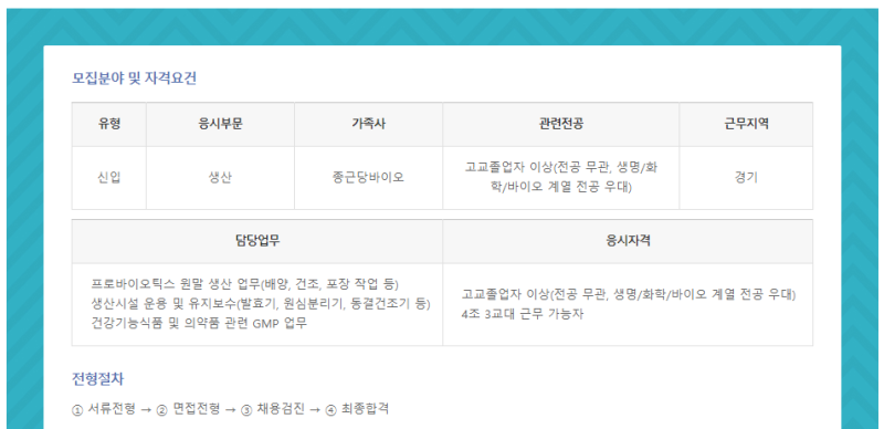 🔍 종근당바이오 생산직(생산) 주요 업무
