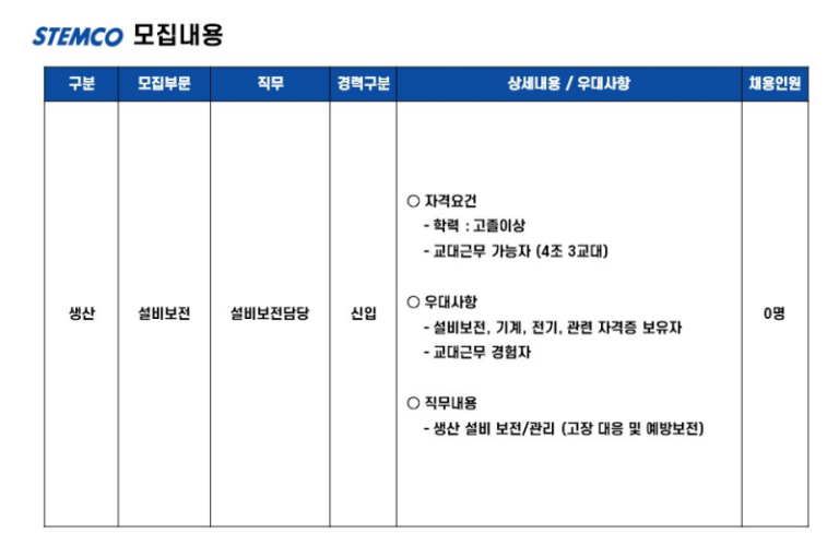 합격률 UP! 충북 청주 스템코 생산직(설비보전) 자소서 완벽 분석 & 합격 전략