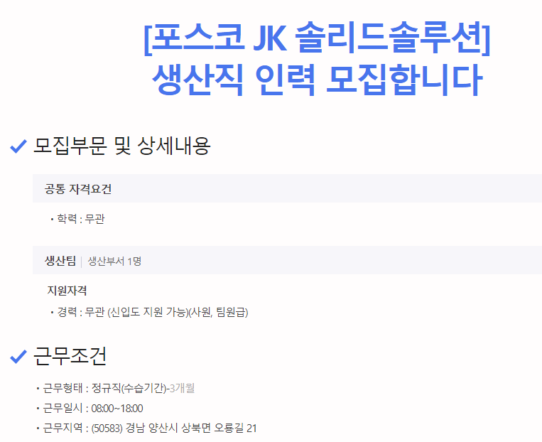 합격률 UP! 양산 포스코JK솔리드솔루션 생산직 합격 자소서 비법 공개 (연봉 정보)